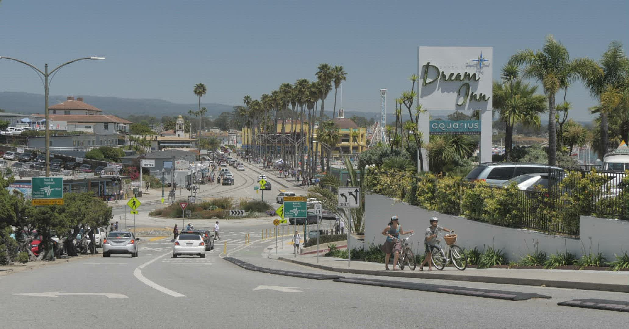 Light traffic in a small beach town, Santa Cruz, California. Near the Santa Cruz Beach Boardwalk. Shot with a DJI Phantom 2 and a GoPro Hero 4 Black.