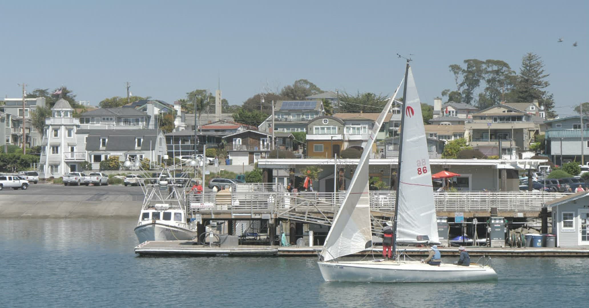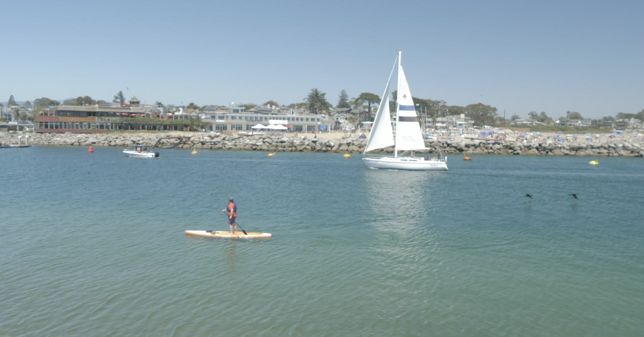 Aerial shot near the Pier in Santa Cruz, California. By the Dream Inn.