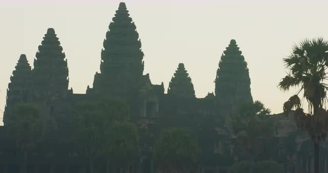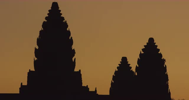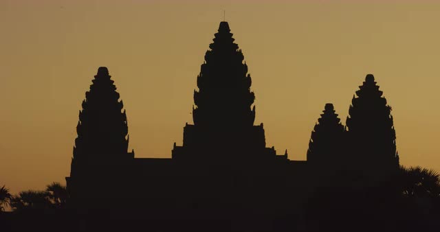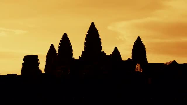 Silhouette of the Main Temple Buildings with Lake Reflection at Sunrise - Angkor Wat, Cambodia