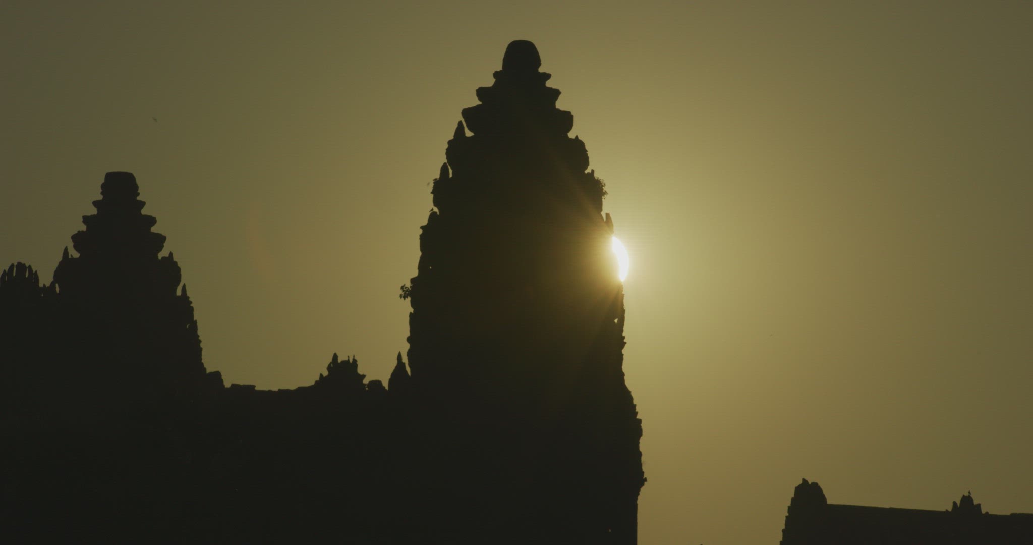 > Silhouette of the Main Temple Buildings with Lake Reflection at Sunrise - Angkor Wat, Cambodia