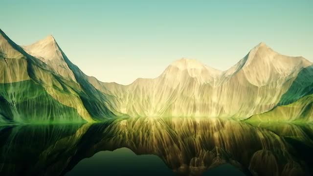 Beautiful mountain landscape with the lake in the middle of high mountains. Computer generated clean background will be good choice for your video.