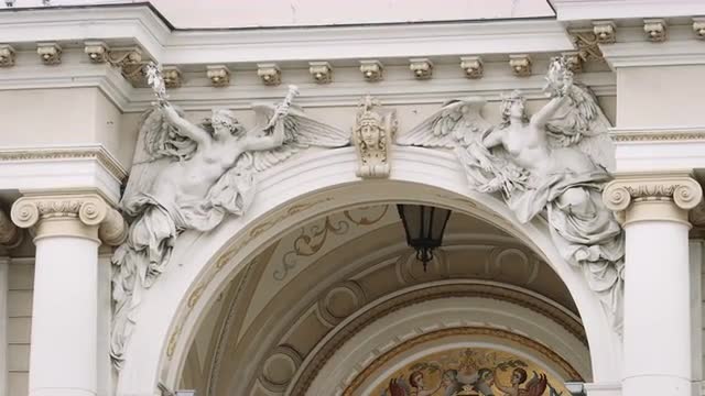1094295 - Female angel statues with wings adorning building arch RED camera 8K slow motion