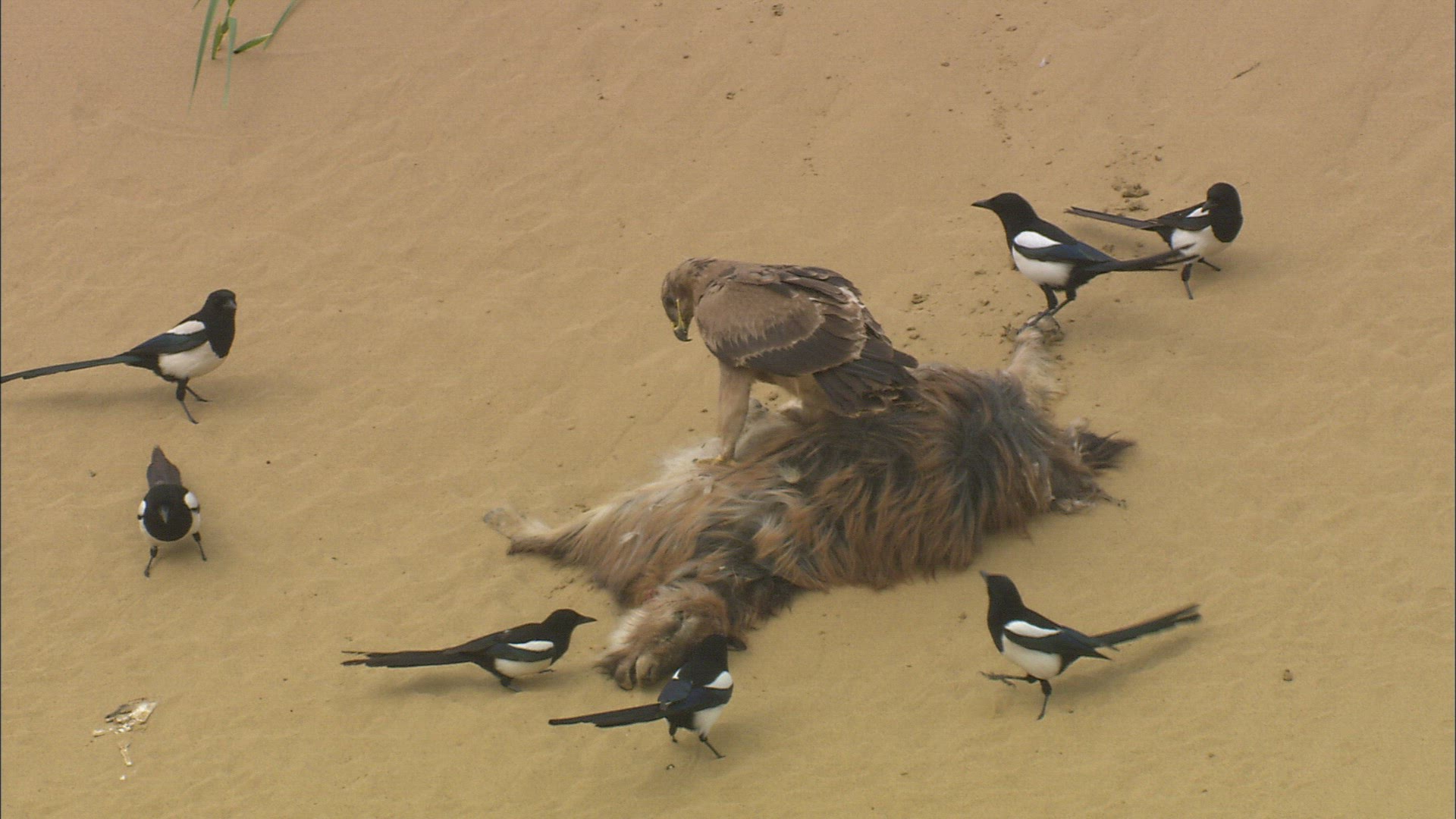 A female Bonelli's eagle eating a pigeon.
