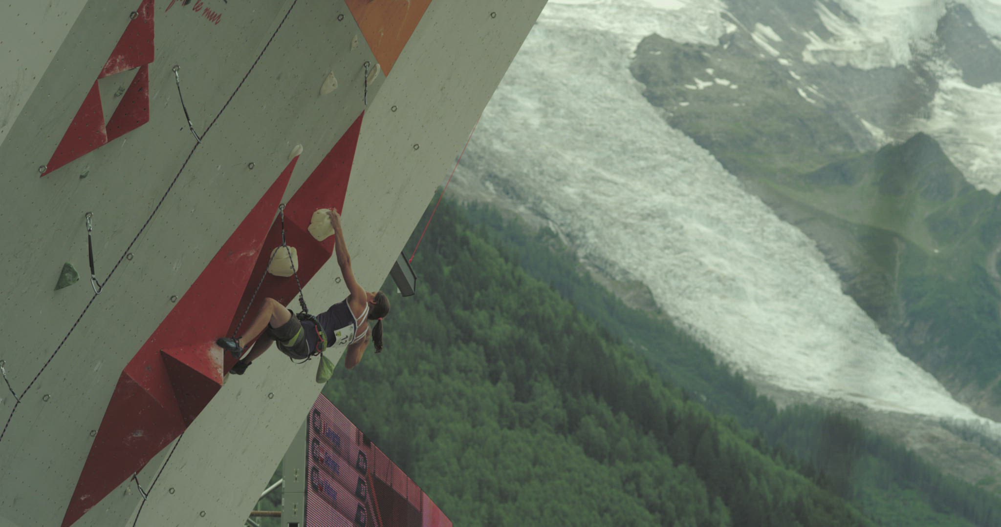 Female rock climber climbing boulder during sunset and topping out with highest rock face of Africa in background (Mount Mulanje). Malawi, Africa