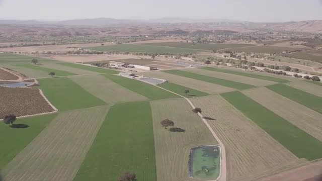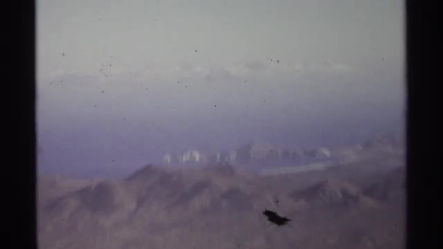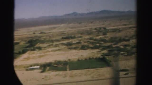 Flying over desert mountains towards lush farmland and snowcapped peaks.