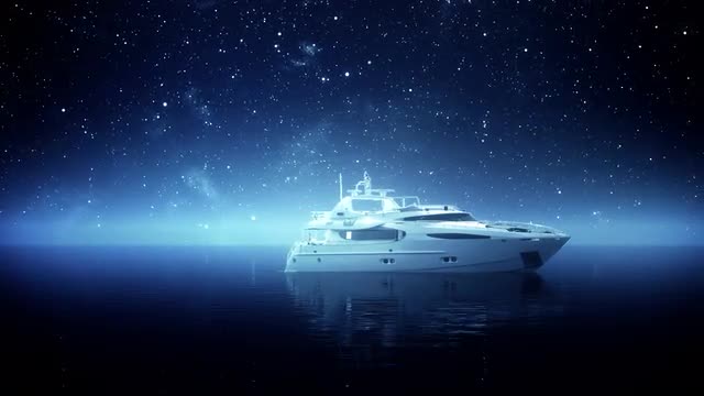 Time-lapse 3d animation of starry night over the sea.