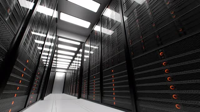 Animation presenting data servers while working. LED lights are flashing. Video can represent cloud computing, information storage, etc. or can be the perfect technology background. Animation is loopable.