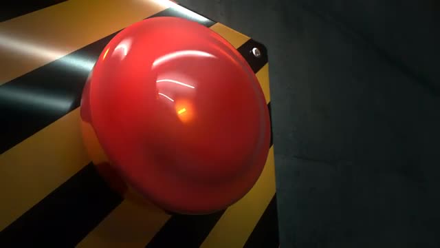 Close up of big red button during emergency situation. Red emergency light flashing in background. Seamless CG animation.