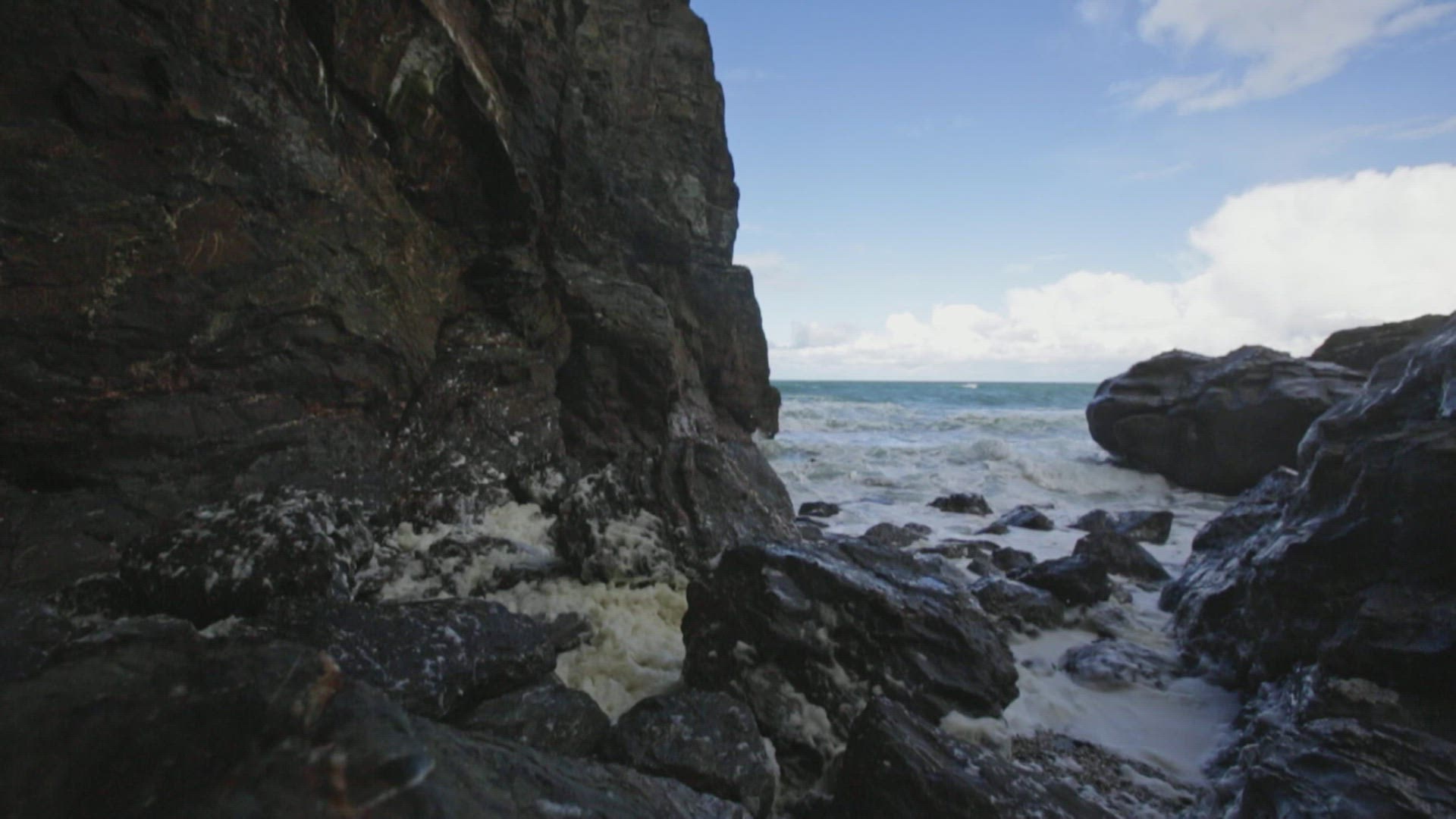 955416 - Flying towards cliffs revealing valley behind the walls in the desert