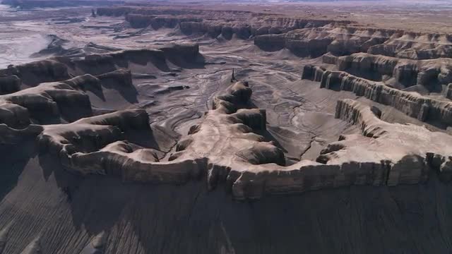 955436 - Aerial view flying over desert landscape in the Caineville desert