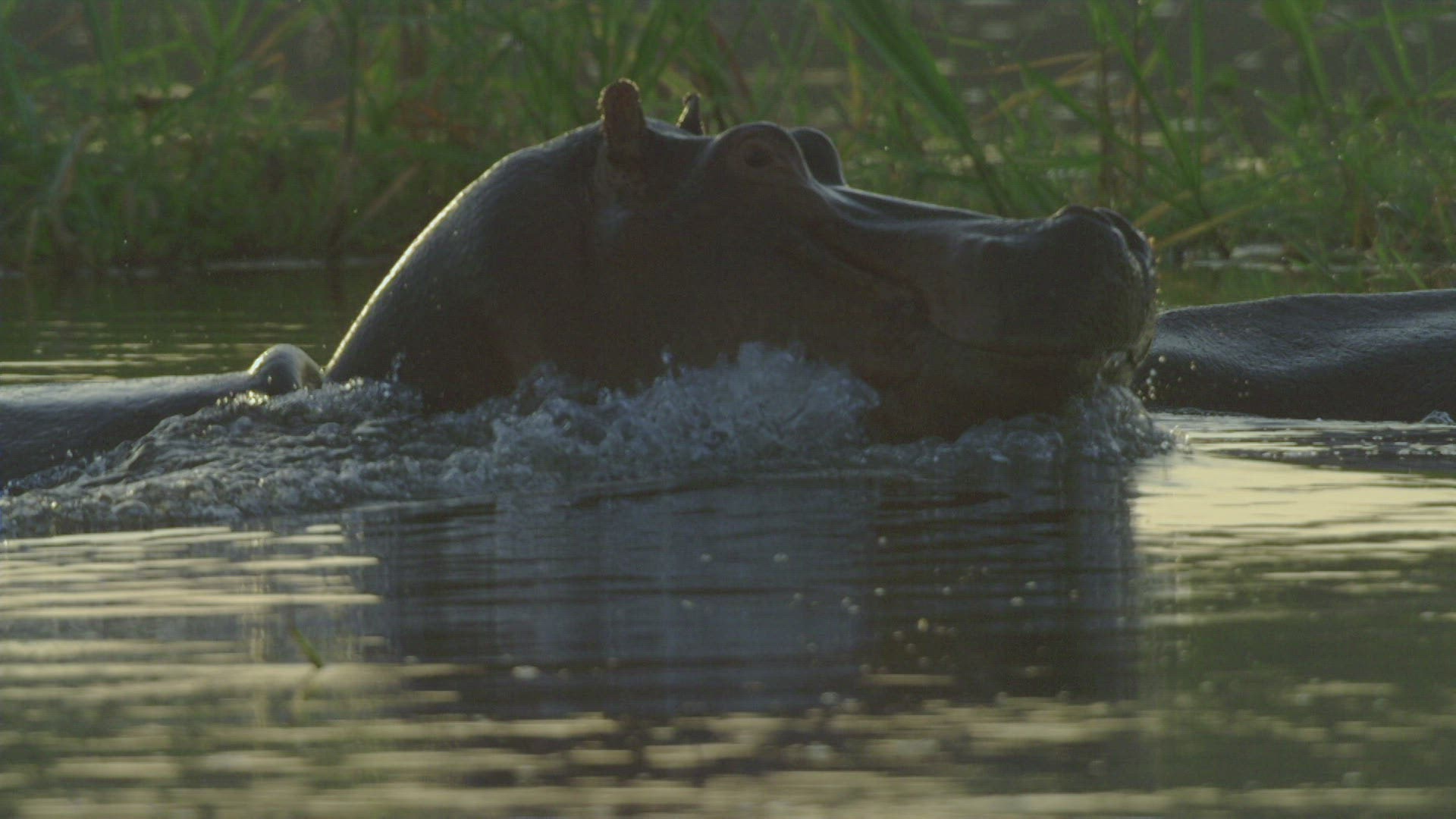 699407 - Hippo swimming in the Nile submerges.