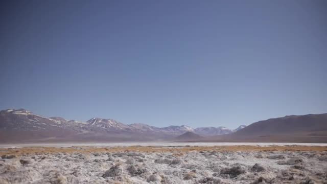 636120 - Aerial Dolly Shot by Desert Rocks to Reveal Large Lake with Rolling Hills