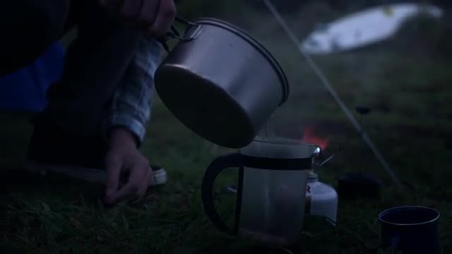Boiling water on a camp stove.