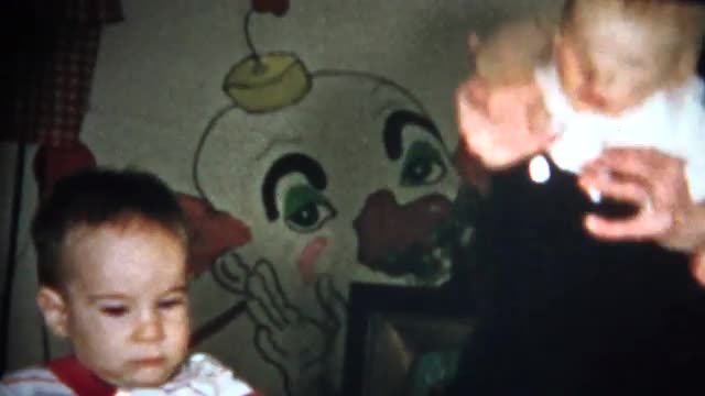 > (8mm Vintage) Creep Clown Wallpaper Kids Playing 1957