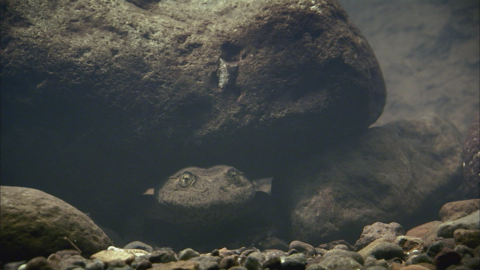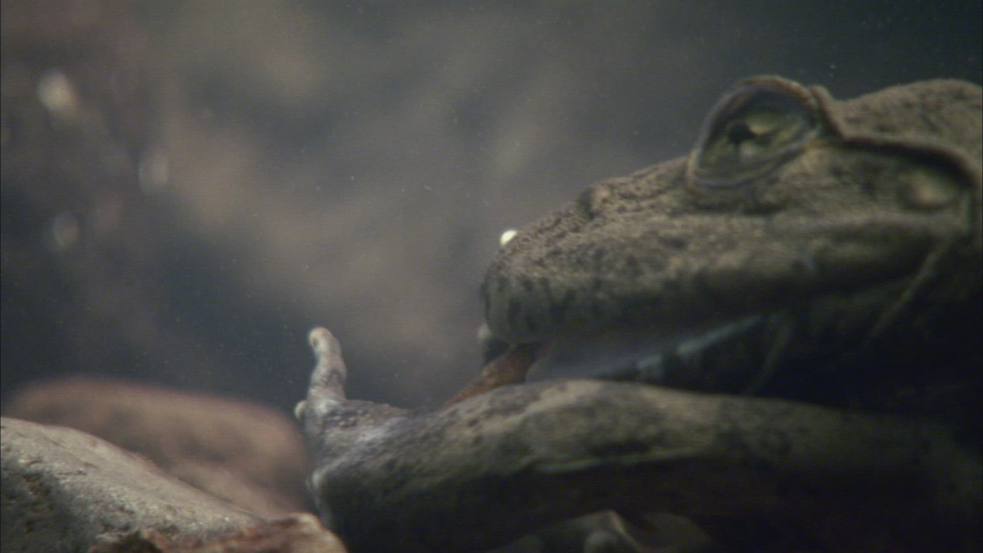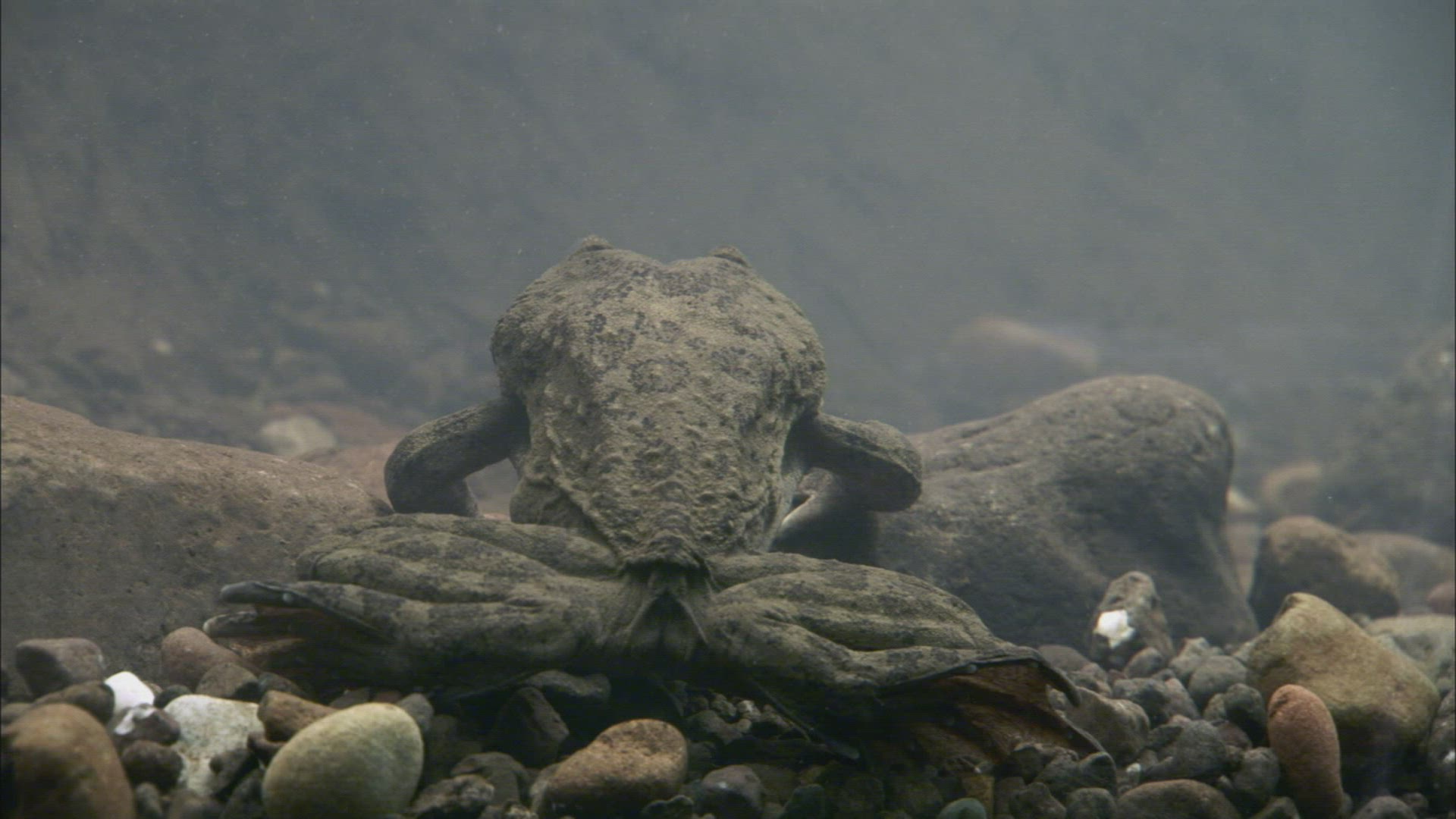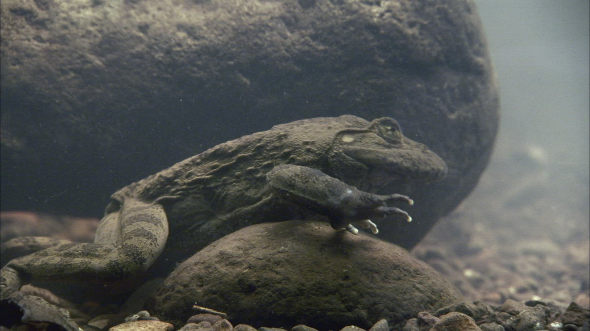 A male Impala makes an unmanly exit after jumping into the water in Tanzania, Africa.