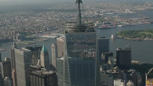 > AERIAL CLOSEUP Orbit Freedom Tower