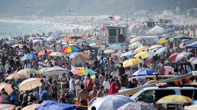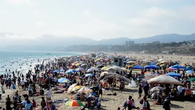 > Time Lapse of Crowded Beach in Santa Monica California