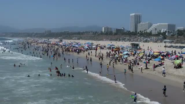 Crowded Beach in Santa Monica California - Time Lapse
