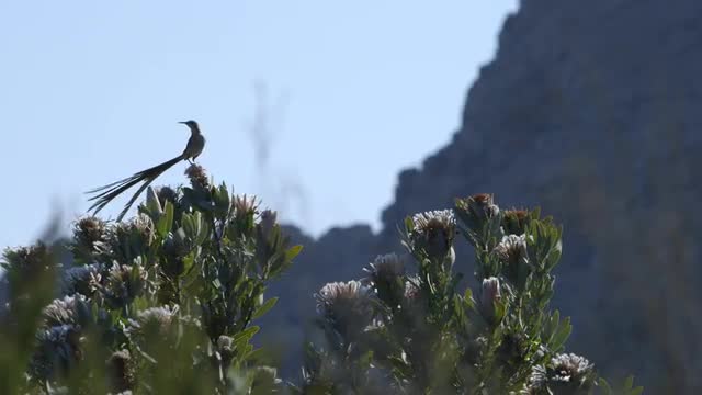 Bird with long tail landing on tree in the Cederberg Mountains. South Africa