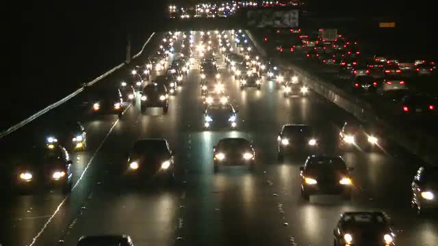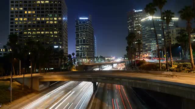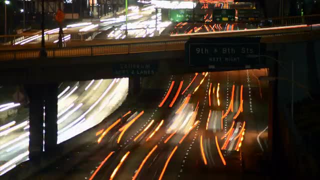 Traffic on the Busy Freeway at Night - Time Lapse
