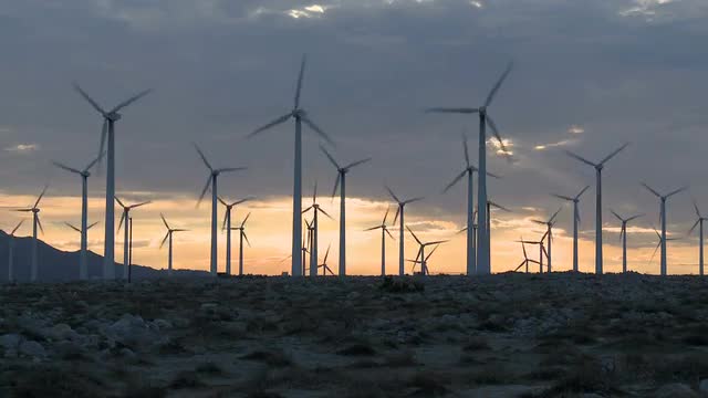 > Power Windmills in the California Desert at Sunset