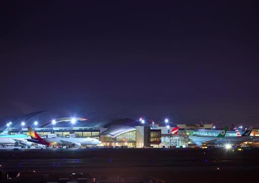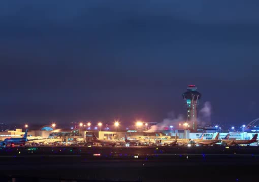 293745 - International Airport at Night - Time Lapse Clip 2