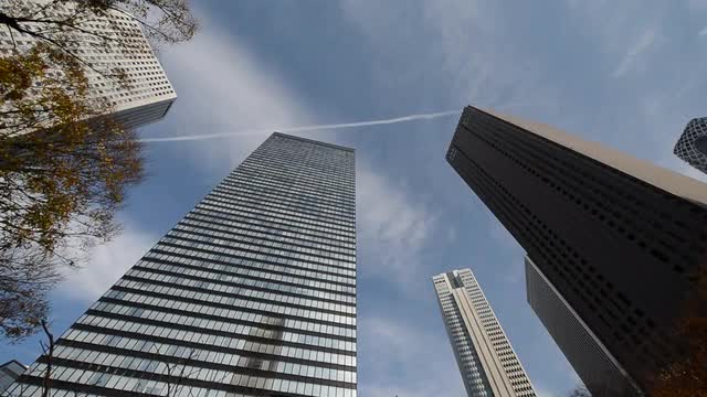 Clouds Reflections of Downtown Los Angeles Office Building Windows. Shot with a Sony EX3.