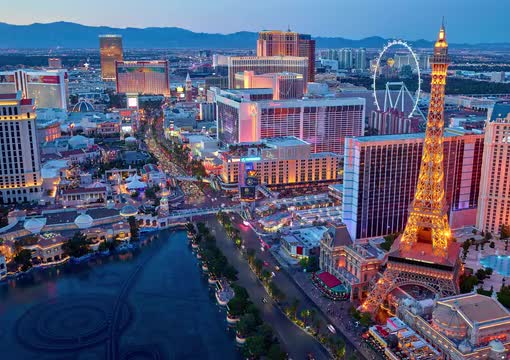 381263 - Time lapse Las Vegas Sunset neon illuminated Hotels Casinos USA