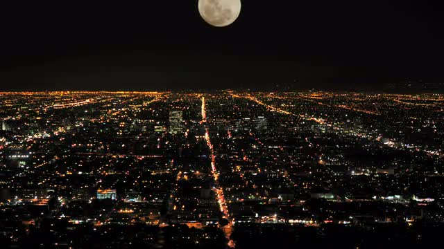 Time Lapse of Moon Rising over Los Angeles - Clip 1