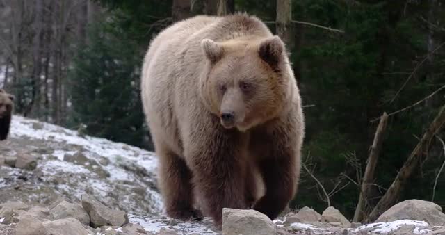 535417 - Brown Bear in Forest Liking Snow