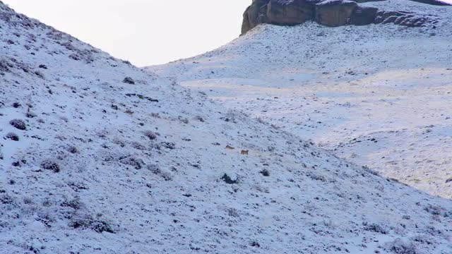 1123456 - mother Puma and her cubs roaming around the slopes snow covered