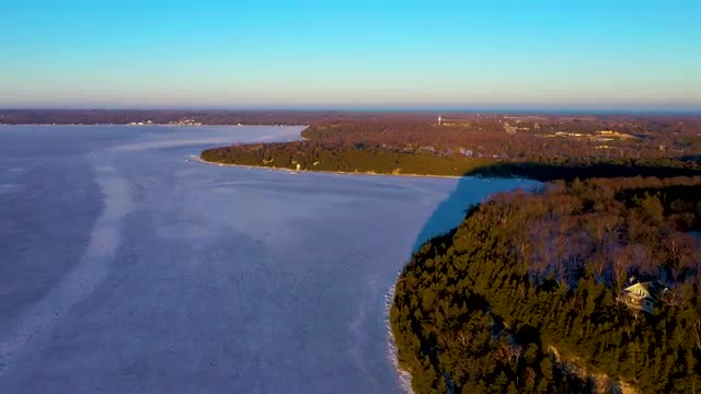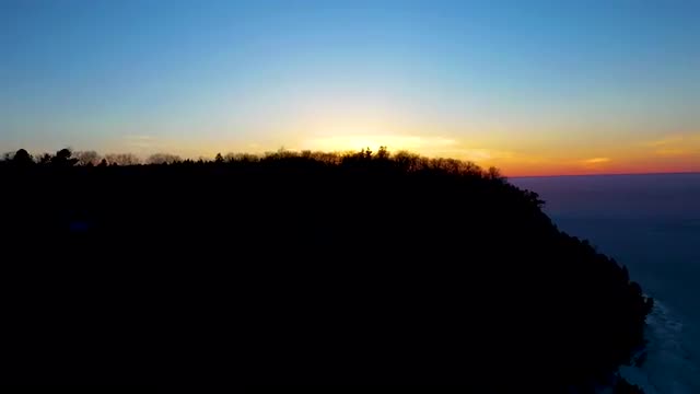 Aerial footage of the Watch Hill Lightoutse in Watch Hill, RI at sunset. Camera dollys right.