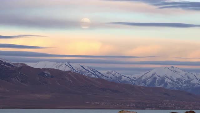 > Full moon rising over winter scenery in Fairbanks, Alaska