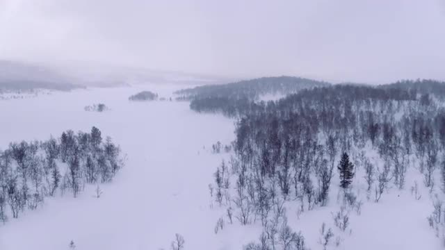 720438 - Flying over frozen landscape during snow storm