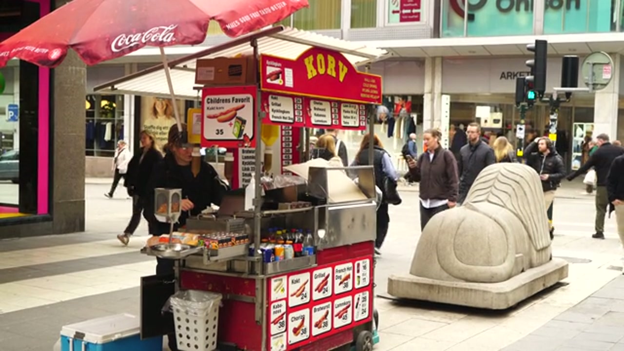 hot dog vendor at Drottninggatan in central Stockholm - for sale -