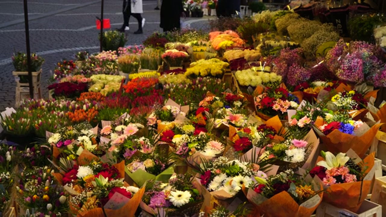 flowers for sale at outdoor market - Hötorget in central Stockholm -