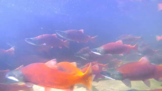 740022 - Underwater view of Kokanee Salmon spawning in a small river in Utah