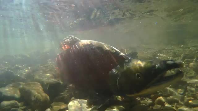 740028 - Underwater view of Kokanee Salmon spawning in a small river in Utah