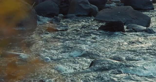 slow motion shot of fish jumping out of river rapids