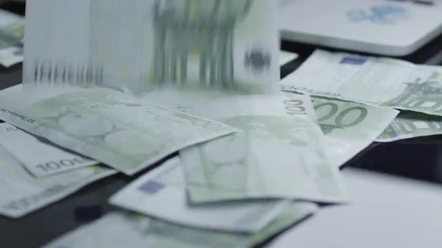 Falling Hundred Euro Banknotes. Finances banking wealth