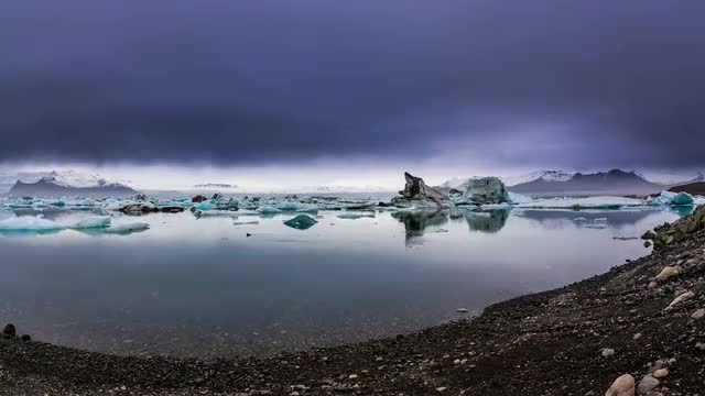 > static wide of icelandic sunset over ocean