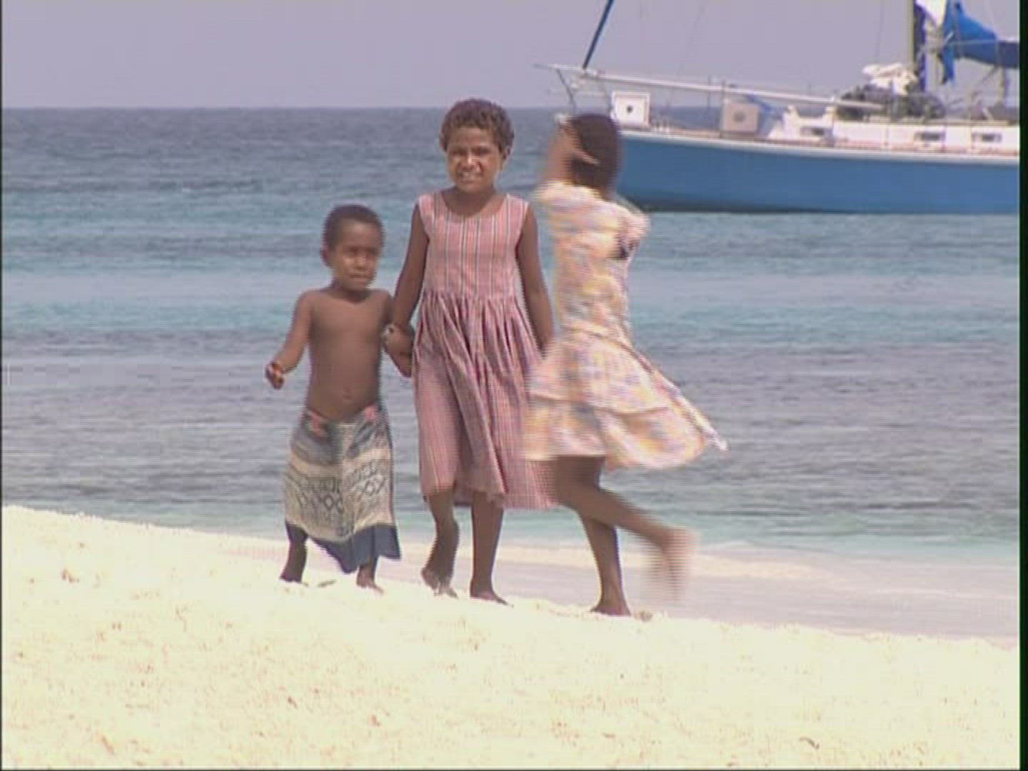 400981 - Young Blond Girl in White Dress on Tropical Beach