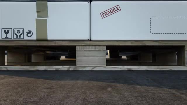 > Forklift Unloading Stack Of Boxes In Truck
