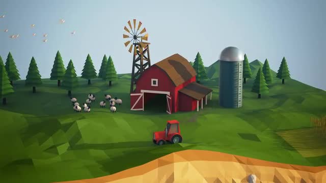 02177 Illustration Of An Agricultural Landscape With Boat In Ocean