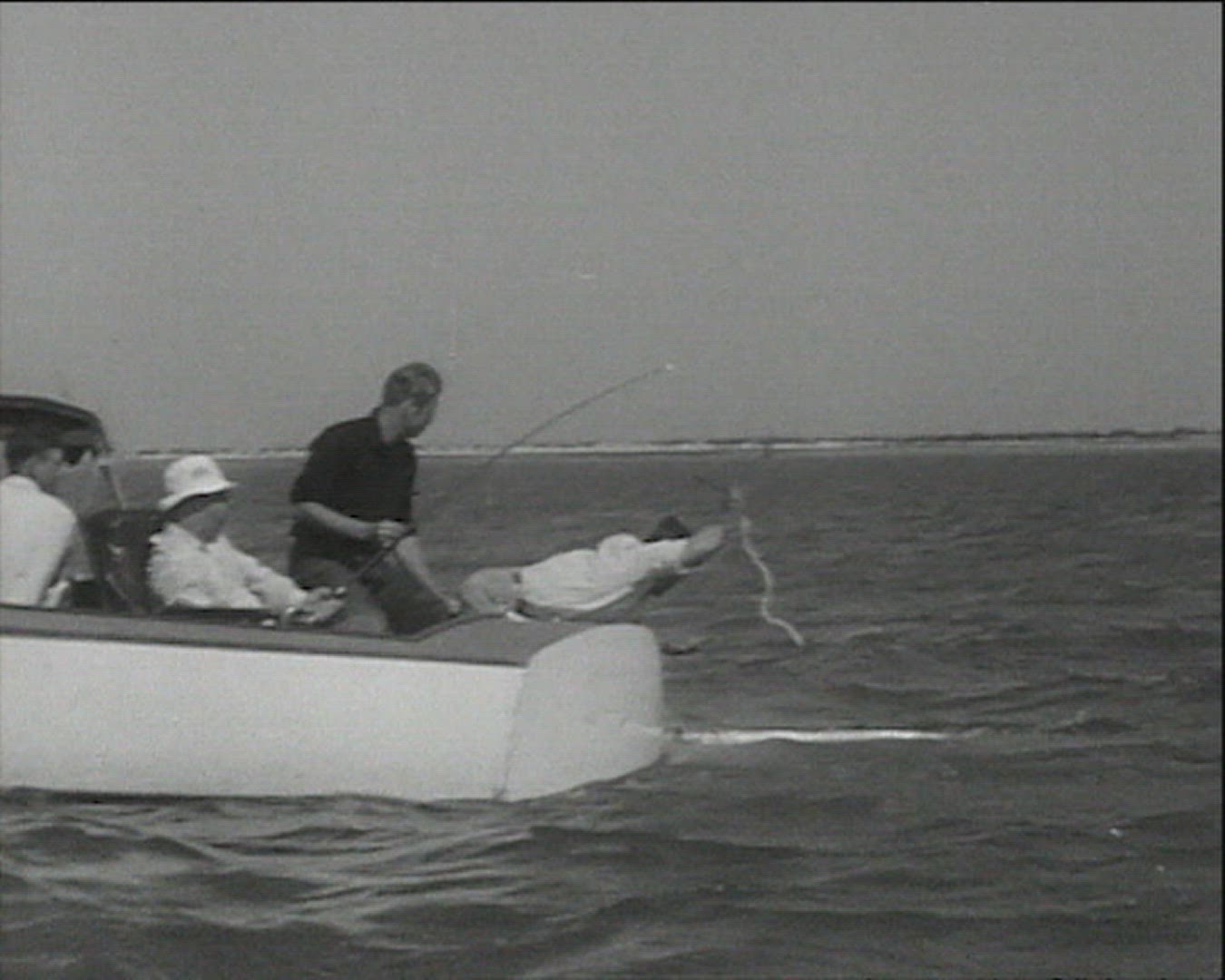 02194 Boat Moored On Water Surface With School Of Fish Swimming Undersea