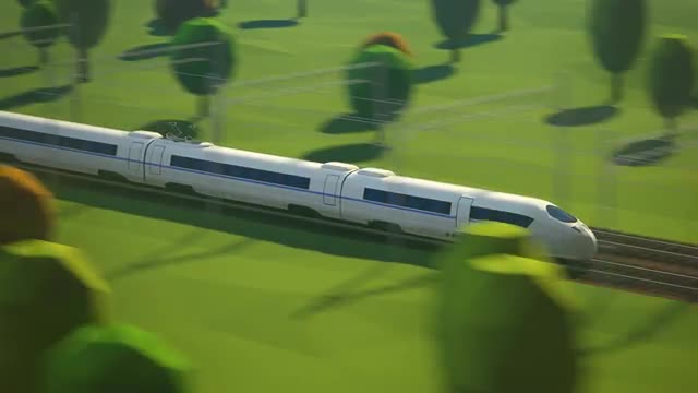 02224 Elevated View Of Modern High Speed Passenger Train Arriving At Railway Station Platform