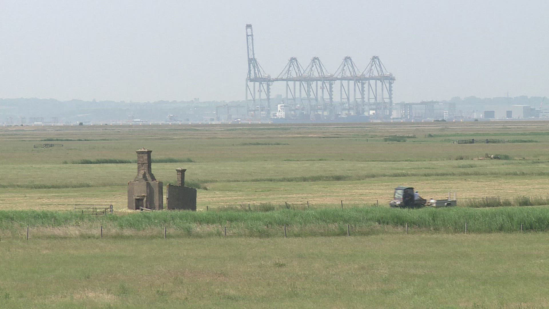 1114672 - Passport with many stamps from different countries shown by a male at the airport turning its pages