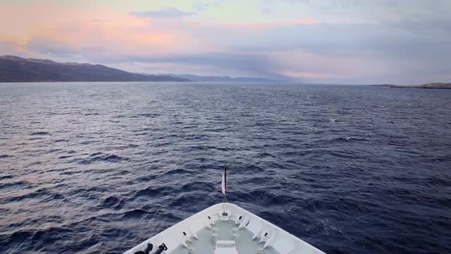 Slow Motion Of Luxurious Boat Cruising Towards The Setting Sun In Ocean