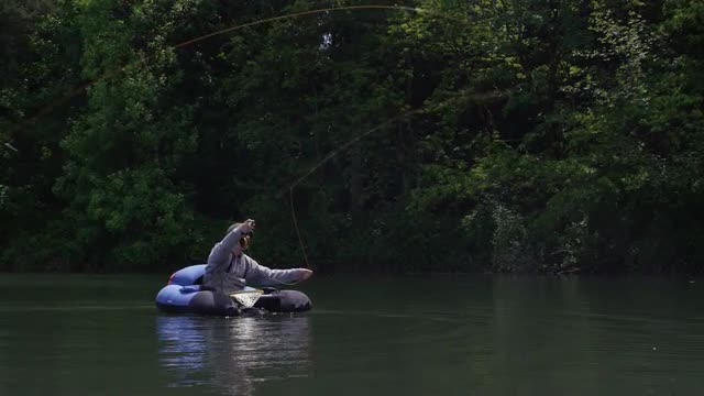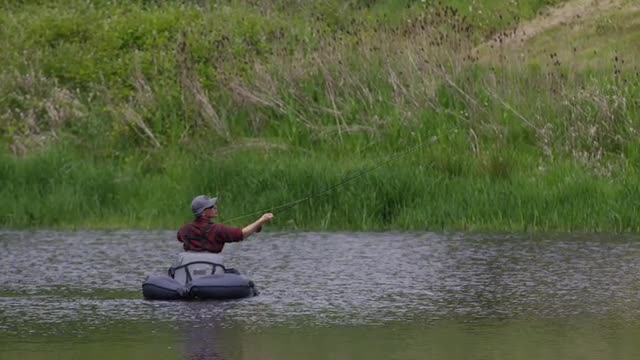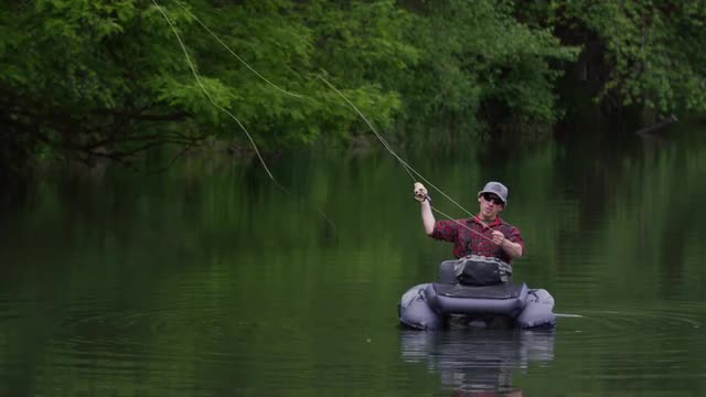 Slow Motion Of Mature Man In Luxurious Boat Riding To Deep Sea Fishing
