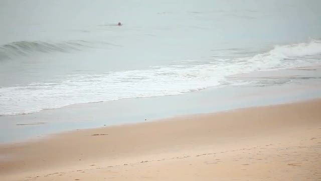 MUI NE, VIETNAM - FEBRUARY 1, 2014: View of the beach with walking and jogging tourists, in Mui Ne, Vietnam.